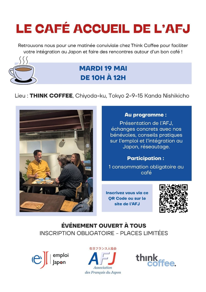 En partenariat avec Emploi Japon, rejoignez-nous pour une matinée alliant convivialité et conseils pratiques pour votre vie à Tokyo. Pour cette édition de mars, le Think Coffee nous ouvre ses portes : l'endroit idéal pour échanger autour d'un excellent café équitable et briser la glace !